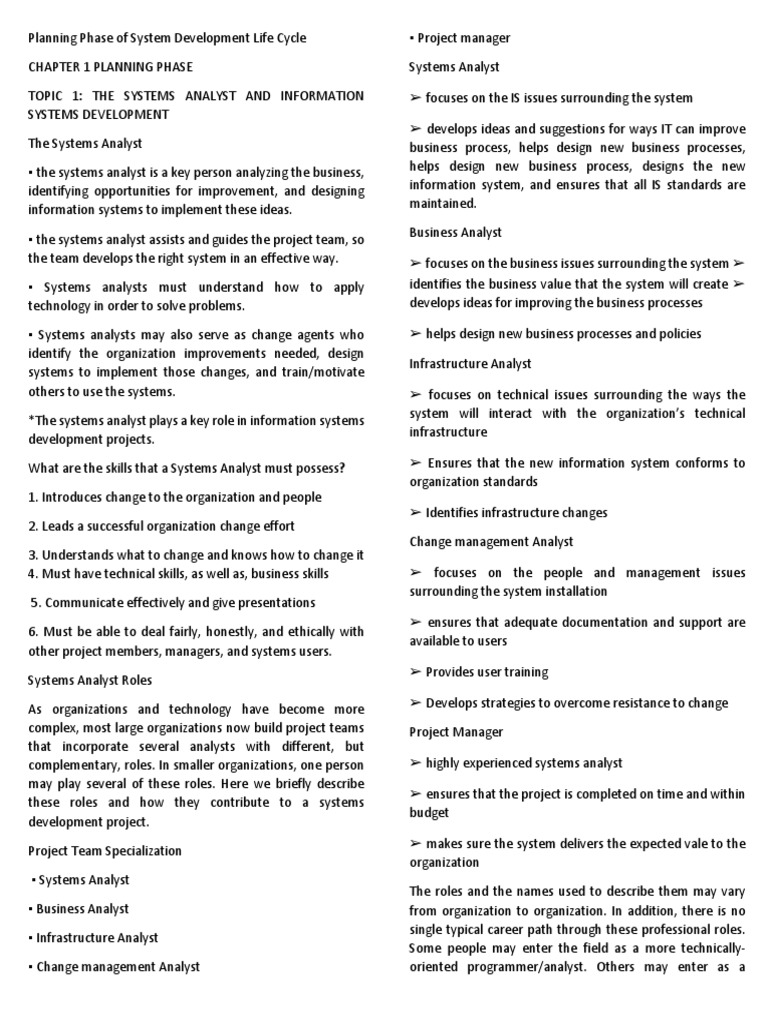 CHAPTER 1 PLANNING PHASE Systems Analyst