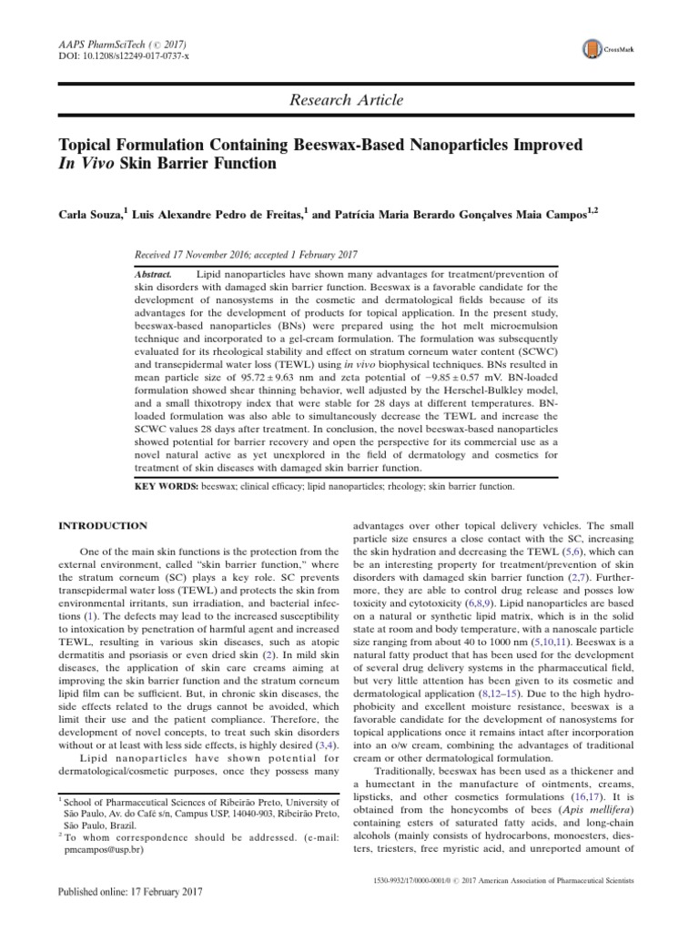 Beeswax Nanoparticles Improves Skin Barrier Function