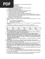 This document contains a 10-question multiple choice quiz on economics concepts. It tests understanding of topics like the definition of economics, differences between microeconomics and macroeconomics, production possibility curves, demand and supply curves, price elasticity, and how different factors can shift demand and supply curves. It also includes 3 short answer questions testing graphical analysis of price controls and demand/supply shifts, as well as explanations of scarcity, opportunity cost, and other foundational economic ideas. The final section includes 3 calculation problems involving price elasticities of demand and supply for maize meal in Botswana.