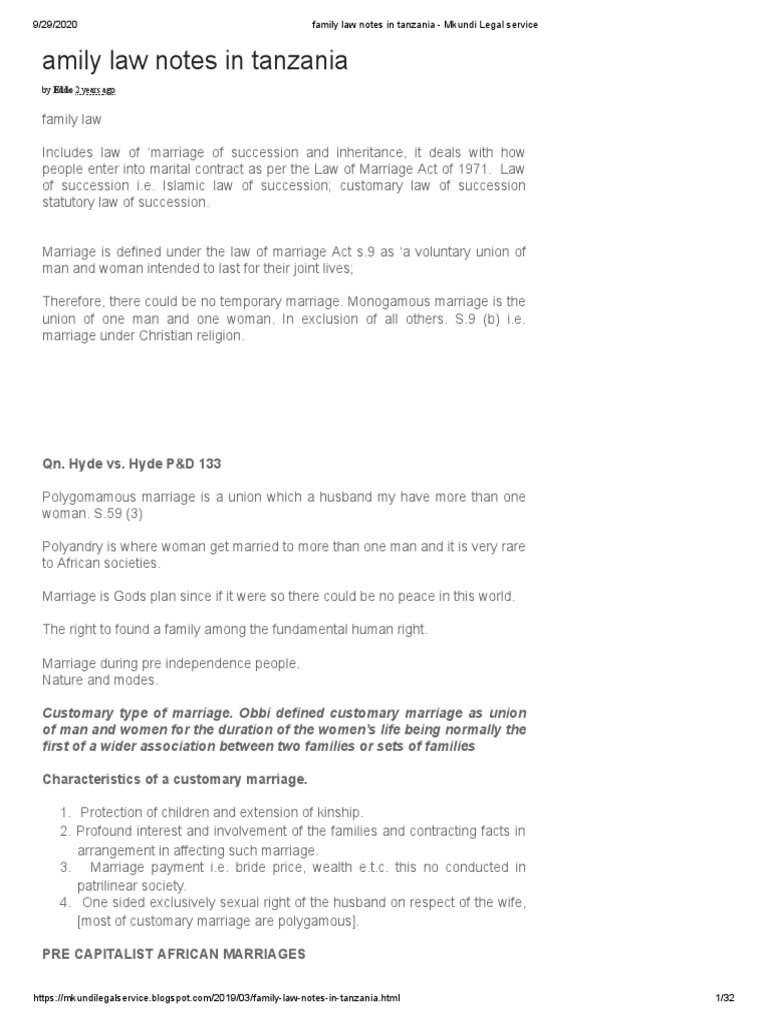 https://mkundilegalservice.blogspot.com/2019/03/family-law-notes-in-tanzania.html 1/32