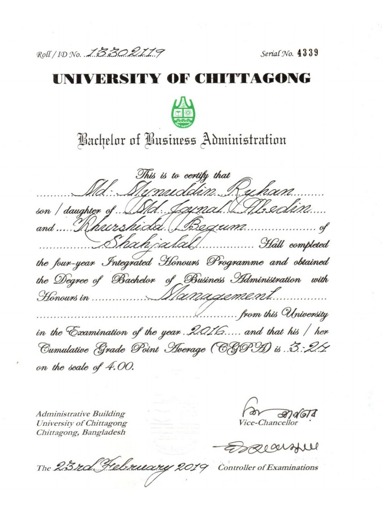 chittagong. Banagladesh, Higher Secondary Certificate (Business Studies)