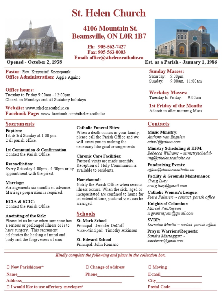 Website: www.sthelenscatholic.ca 1st Friday of the Month: