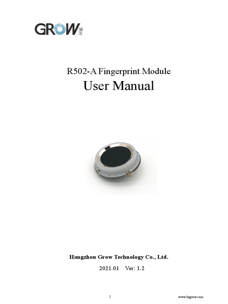Thank you for you selection of R502-A Fingerprint Identification Module of GROW.