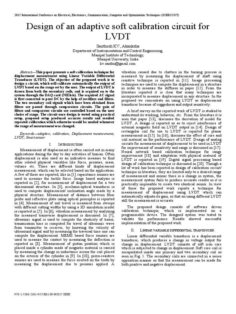 Mechanical systems and Signal processing, vol. 94, 2017, pp. 180-201. calibration technique for displacement measurement using LVDT”,