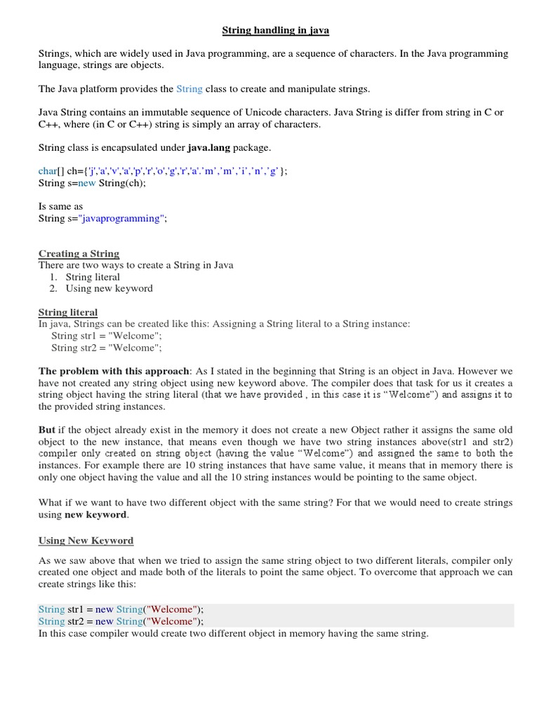 String handling in java