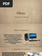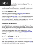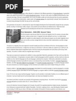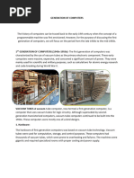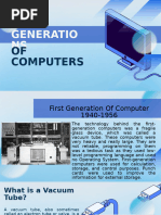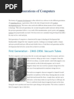 The document discusses the four generations of computers from the 1940s to present. The first generation used vacuum tubes, were room-sized, and expensive to operate. The second generation introduced transistors, making computers smaller, cheaper, and more reliable. The third generation saw the development of integrated circuits and silicon chips, further miniaturizing computers. The fourth generation brought microprocessors, putting thousands of integrated circuits onto a single silicon chip and bringing computers to the mass market.
