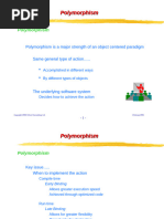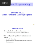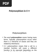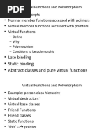 This document discusses polymorphism in C++. It explains that runtime polymorphism allows the same function to have different meanings depending on the object, and is achieved through inheritance and virtual functions. When a base class pointer or reference is used, the version of the function that is called depends on the actual object type at runtime. Abstract classes are base classes that are incomplete and require derived classes to define missing functionality, while concrete classes can be instantiated as they define all members. Pure virtual functions make a class abstract by having a declaration but no definition.