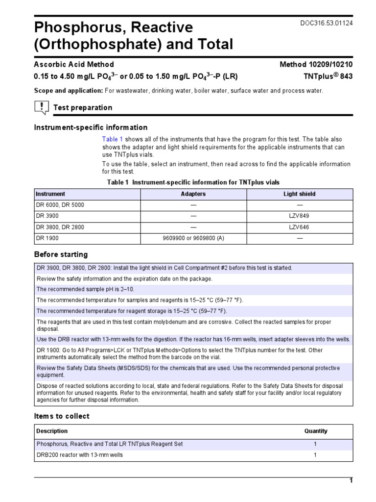 Phosphorus, Reactive and Total LR TNTplus Reagent Set 1