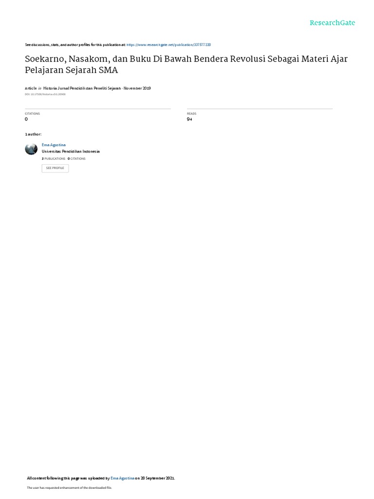To cite this article: Agustina, E. (2019). Soekarno, Nasakom, dan buku di Bawah bendera Revolusi sebagai materi ajar