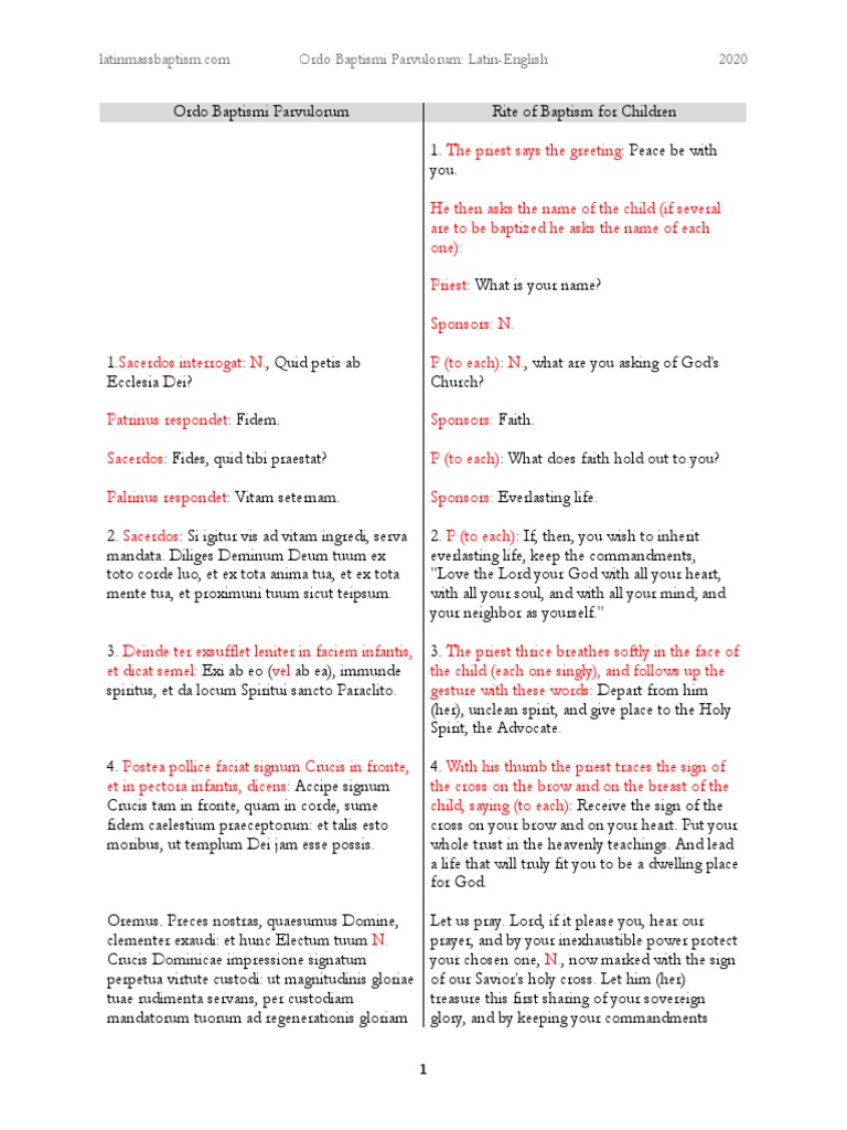 latinmassbaptism.com Ordo Baptismi Parvulorum: Latin-English 2020