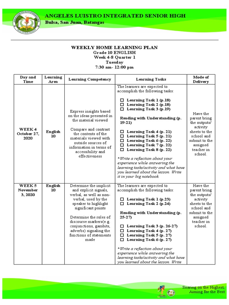 WEEK 5 English Determine the implicit The learners are expected to Have the