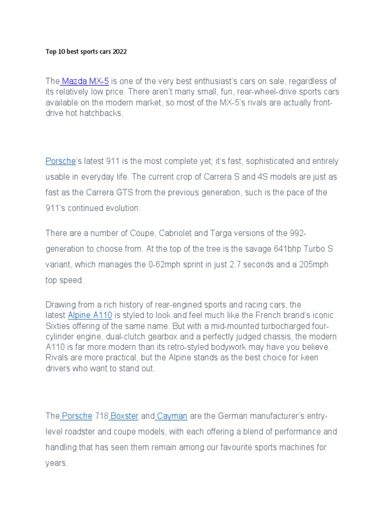 Top 10 best sports cars 2022