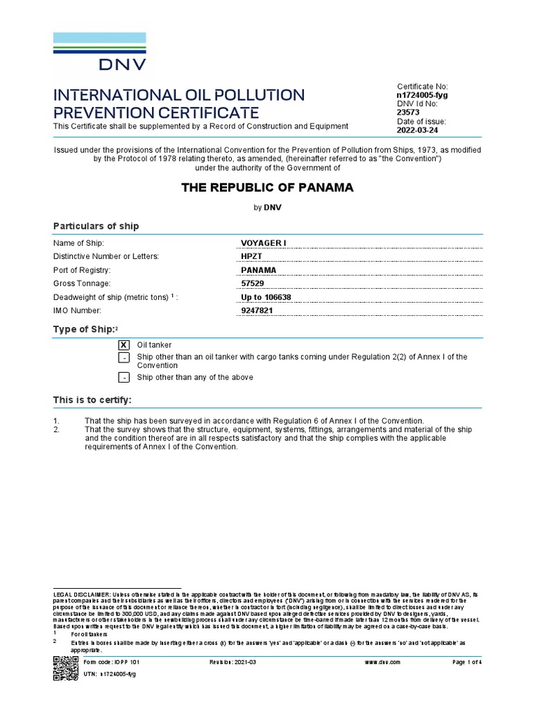 Form code: IOPP 101 Revision: 2021-03 www.dnv.com Page 1 of 4