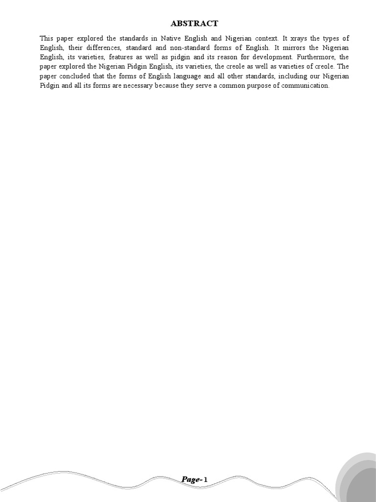 This paper explored the standards in Native English and Nigerian context. It xrays the types of