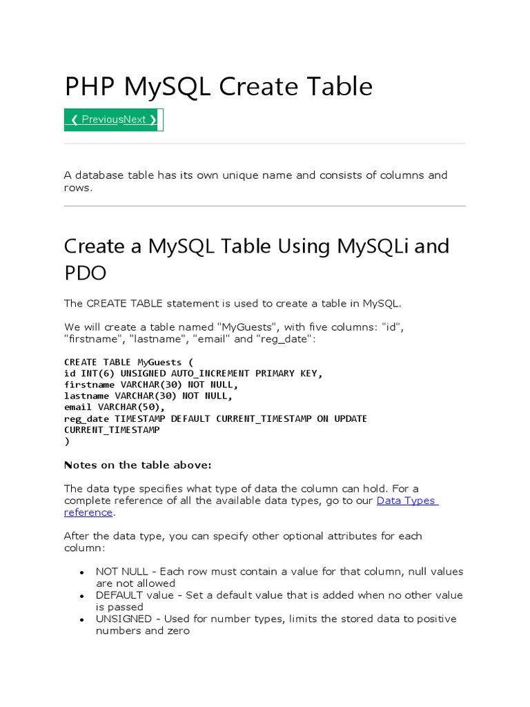 $sql = "CREATE TABLE MyGuests (