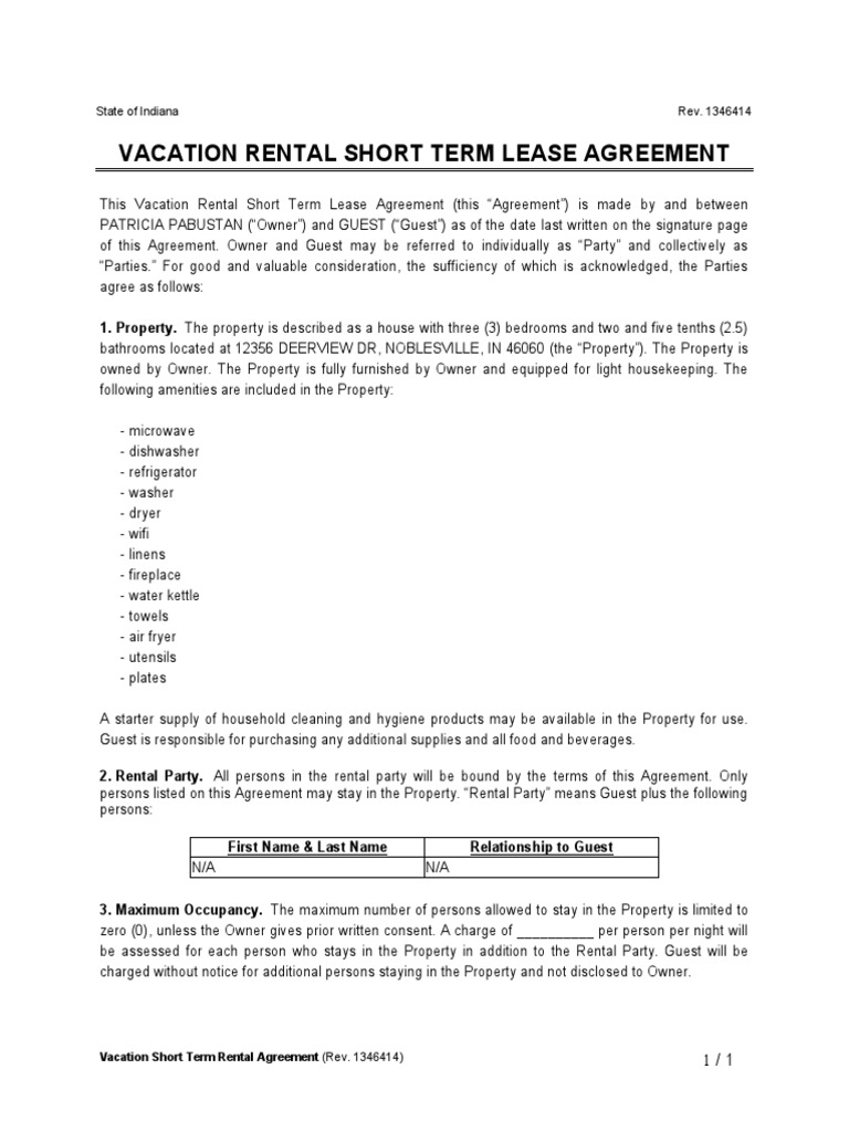 Vacation Short Term Rental Agreement (Rev. 1346414) 1/1