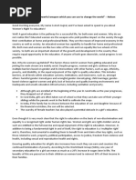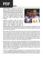 Education is a fundamental right for all people including women. Educated women play important roles in society and understand the value of education. Providing education to women has benefits such as reducing human trafficking, increasing political representation, improving child and maternal health, preventing disease transmission, delaying child marriage, reducing family sizes, increasing income potential, and reducing poverty.