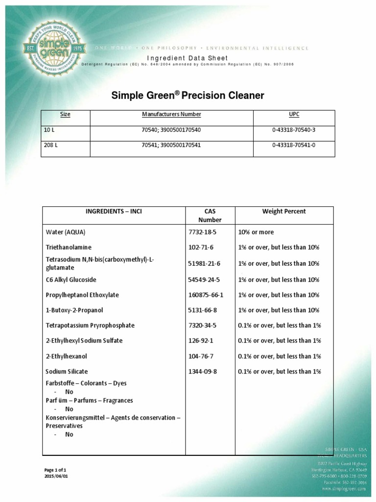 Propylheptanol Ethoxylate 160875-66-1 1% or over, but less than 10%