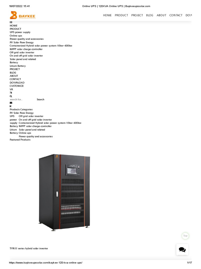 18/07/2022 15:41                                              Online UPS | 120KVA Online UPS | Baykeeupssolar.com