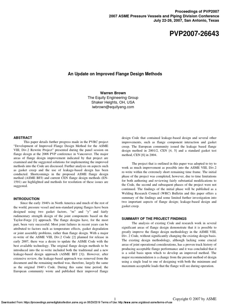 Flange Design”, PVP2005-71342, Proceedings of the ASME PVP,