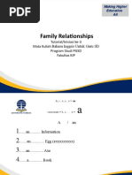 This document defines various family relationships in Indonesian and Arabic. It provides terms for immediate family like parents, grandparents, children, siblings; extended family like aunts, uncles, cousins; in-laws; and other relationships like spouse, fiancé, adopted child, widow/widower. Terms are given for both male and female relatives. The document serves as a glossary of family terms in the two languages.