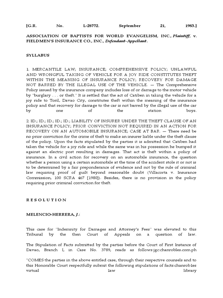 1. MERCANTILE LAW; INSURANCE; COMPREHENSIVE POLICY; UNLAWFUL