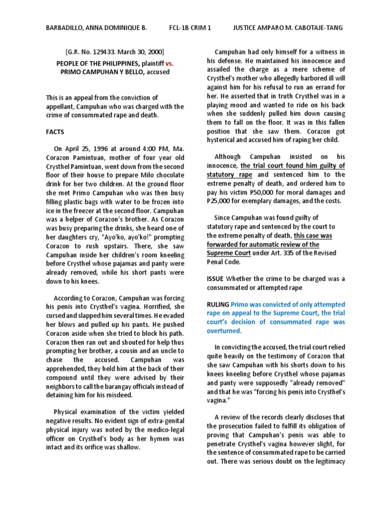 BARBADILLO, ANNA DOMINIQUE B. FCL-1B CRIM 1 JUSTICE AMPARO M. CABOTAJE-TANG