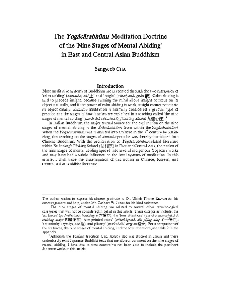 Cha 2013 - The Yogacarabhumi Meditation Doctrine