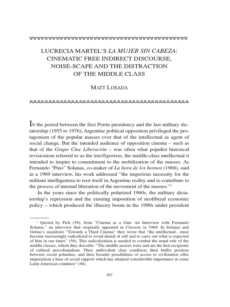 individual struggle for prosperity. Lucrecia Martel’s La mujer sin cabeza