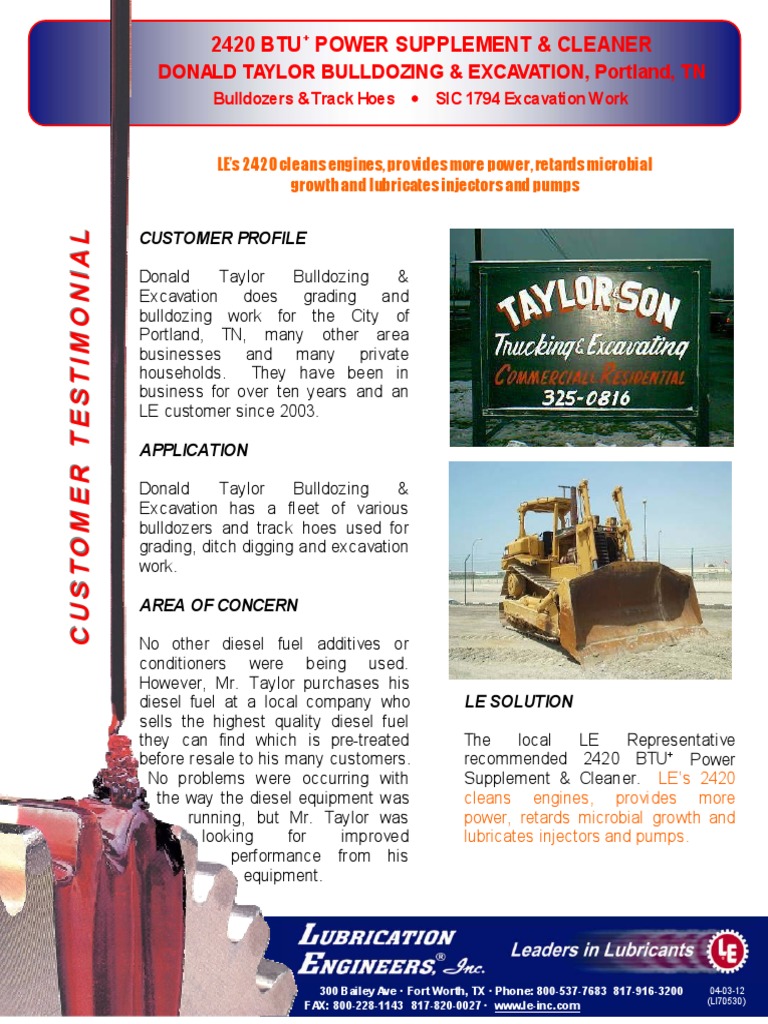LE’s 2420 cleans engines, provides more power, retards microbial
