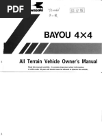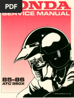 pLoway Gas 1-18 o e eEMISSION CONTROL INFORMATION LABEL (After '97 California type only) Tho Emission Control Information Label is located on the battory box cover under the seat GENERAL INFORMATIONLUBRICATION LUBRICATION DIAGRAM CAMSHAFT CRANKSHAFT OM FErER Q— lL PUMP: OL FILTER SCREEN MAINSHAFT SHIFT FORK SHAFT (COUNTERSHAFT 2-02. LUBRICATION SERVICE INFORMATION 24 OIL FILTER SCREEN 24 TROUBLESHOOTING 22 FRONT DIFFERENTIAL (TRX300/FW) ENGINE OIL LEVEL 2.3 REAR FINAL DRIVE OIL. 24 RIGRIKOE AFTER CHANGE: 2.3 FRONT GEAR CASE OIL (TRX300FW) 25 Ez LUBRICATION POINTS 26 SERVICE INFORMATION GENERAL | 6 ccc Ifthe engine must be running 10 do some work, ake sure thatthe area is wel-ventlated. Never run the engine in an enclosed area. ‘The exhaust contains poisonous carbon monoxide gas that may cause loss of consciousness and lead to death, CAUTION Used engine of may cause skin cancer if repeatedly lef in contact wih the skin for prolonged periods. Akhougi this i unlikely unless you hhancle used oi on a daly bass, itis stil advisable fo thorcughyy wash you hands with soap and water as s00n as possible atter handing used oil + Section 8 shows how to service the oil pump. SPECIFICATIONS Engine Oil Capacity 2.5 lit(2.6 US qt, 2.2 Imp ql at disassembly 2.25 it (298 US qf, 1.98 Imp qt) at ol and fiter change ENGINE OIL VISCOSITIES 2.2 lit (2.3 US qt, 1.9 Imp at) after draining Engine Oll Recommendation Use Honda GN4 4-stroke oll or equivalent. API Service Classification: SF or SG Viscosity: SAE 10 W-40 ‘Other viscosities shown in he chartmay be Used when the average temperature in your riding area is within the incicated range. Rear Final Drive il capacity 100 cc (3.4 02) at disassembly {90 ce (3.0 02) after craining Oil recommendation Hypoic gear ail, SAE #80 Front Differential (TRX300FW) Oil capacity 200 cc (6.6 02) at disassembly 490 cc (6.4 02) after draining Oil recommendation Hypo gear all, SAE #80 Front Gear Case (TAX300FW) il capacity 200 ce (6 8 02) at disassembly 190 cc (6.4 02) after draining (Ol! recommendation Use Honda GN4 4-stroke oll or equivalent API Service Classification: SF or SG Viscosity: SAE 10 W-40LUBRICATION TORQUE VALUES Engine oii drain bolt Oil fiter cover Difforentialfinal drive/goar case ol filor cap Difforentialfinal drive of drain bolt Front gear case dain bolt TROUBLESHOOTING Engine oll level too tow — high oll consumption External ol leaks Wor piston rings = Oil not changed efton enough «= Faully head gasket 25 Nem (2.6 kgm, 18 fb) 10 Nem (1.0 kg-m, 7 fib) ~ Apply oil 412 Nem (1.2 kg-m, 9 tb) 12 Nem (1.2 kg-m, 9 ft) 22 Nem (2.2 kg-m, 16 te-lb) Engine oll contamination ior fiter not changed often enough + Hoad gasket faulty + Wom piston ringsLUBRICATION ENGINE OIL LEVEL lace the vehicle on lavel ground Check the cl level using the ol filler capidipstick by placing itinto the Mller hole without screwing iin Ifthe cillevelie below or near the laverlevel line on the dip- stick, add the recommended cil (page 2-1) up to the upper level line. ENGINE OIL & FILTER CHANGE Loans It the engine must be running 10 do some work, make ‘ure thal the area's well-ventilated. Neverrun theengine in an enclosed area. The exhaust contains poisonous ‘carbon monoxide gas that may cause loss of conscious- hess and lead to death, With tne vehicle on level ground, star the engine and let i Ide fora fow minutes. Stop the engine. move the oil filer cap and drain bolt Remove the three bolts attaching the al fiter cover, clfiter and spring. Discard the oil fiter. CAUTION Used engine of may cause skin cancer frepeateay let in ‘contact wit the skin ior prolonged periods. Although tis is unlikely uniess you handle used oilon a daly basi, is si! advisable fo thoroughly wash your hands with saqp and wator as soon 2s possiblo affor handling used oi. Drain the oll completely. Gently rock the unit side to side to help draining, Check that the sealing washer on the drain bol is in good condition and replace if necessary. Install the drain bolt. TORQUE: 25 Nm (2.5 kg-m, 18 ttb) Install the cil iter spring to the right crankcase cover. Meke sure that the O-rings are in good condition and replace if necessary Install a new oil fier with its “OUT-SIDE (TOWARDS, FILTER COVER)" mark facing out. FLIER, “OUTSIDE” MARK. OIL FILTER COVER, CAUTION Instaling the oll fiter backwards will result in severe engine damage. ‘Apaly ol to the cover bolt threads and O-rings. Install the oil fiter cover and tighton the cover bolts to the specified torque TORQUE: 10 Nem (1.0 kg-m, 7 ftib) 2-3LUBRICATION Fill the crankcase with the recommended oll irre Be lL CAPACITY: 2:5 lit (26 US qt, 2.2 Imp qt) at disassombly 2.25 It (2.38 US at, 1.98 Imp qt) atoll and fier change 2.2 lit (2.3 US qt, 1.8 Imp qt) after draining Instat the oll lar cap/dipstick. Start the engine and lett idle for 2 to 8 minutes. ‘Stop the engine and check that the oil level is at the upper level line on the dipstick Make sure there are no ol leaks, OIL FILTER SCREEN Remove the right crankcase cover (page 8-3) Remove the oil fiter screen and clean i Install the ol filter screen, Instal the right crankcase cover (page 8-23) FRONT DIFFERENTIAL (TRX3OOFW)/ REAR FINAL DRIVE OIL OIL CHANGE Fiont Use a sultabte oll guide under the drain bol! o prevent oll diferente sping onthe tame, Removathe ol filer cap andthe drain bolttocrainallol rom the gear casa, (Check ha he drain bot sealing washer Is in good corastion Tighten the drain bolt tothe specified torque. TORQUE: 12 N.m (1.2 kg-m, 9 ft-lb) Fill with the recommended oil to the standard level ol capaci: FRONT DIFFERENTIAL: 200 cc (6.8 oz at cisassombly 190 c¢ (6.4 2) after draining wo EAR FINAL DRIVE: 100 ce (24 62) at dleaosombly 8068 (3.0%) ater dining RECOMMENDED OL: lar SRS a wwe Install tho fillor cap. TORQUE: 12 Nem (1.2 kg-m, 9 ft-lb) Front Remove the oil guide, iterental only: FRONT GEAR CASE OIL (TRX300FW) LEVEL CHECK Place the vehicle on level ground. Remove the oil chock bolt and che