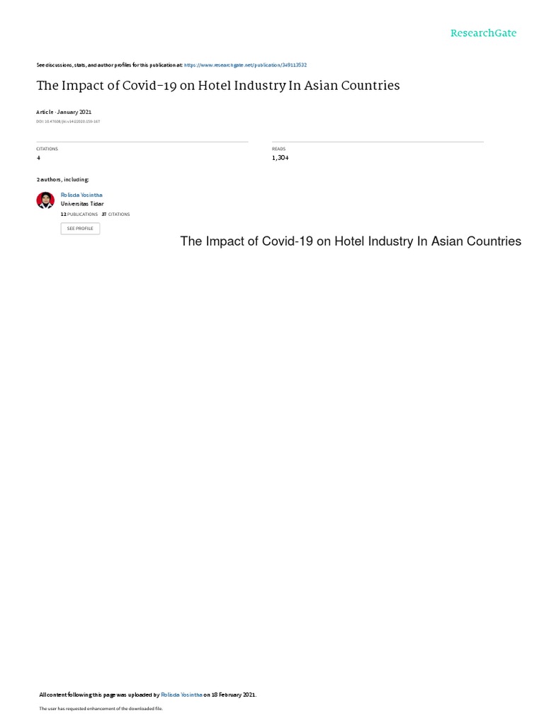 The Impact of Covid-19 On Hotel Industry in Asian Countries