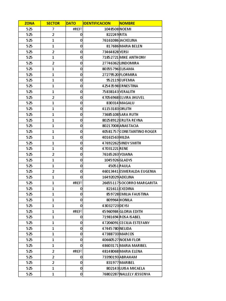ZONA   SECTOR   DATO     IDENTIFICACION     NOMBRE