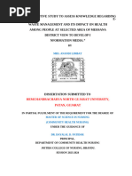 This document summarizes a research thesis submitted to Kampala University in partial fulfillment of the requirements for a Master of Public Health degree. The thesis assesses the knowledge, attitudes, and practices of healthcare workers regarding medical waste management at Gabiley General Hospital in Somalia. It includes declarations of original work, approval from the thesis supervisor, acknowledgements, a list of abbreviations, and outlines of the thesis contents including chapters on the introduction and background, literature review, methodology, results, discussion, conclusions, and recommendations.