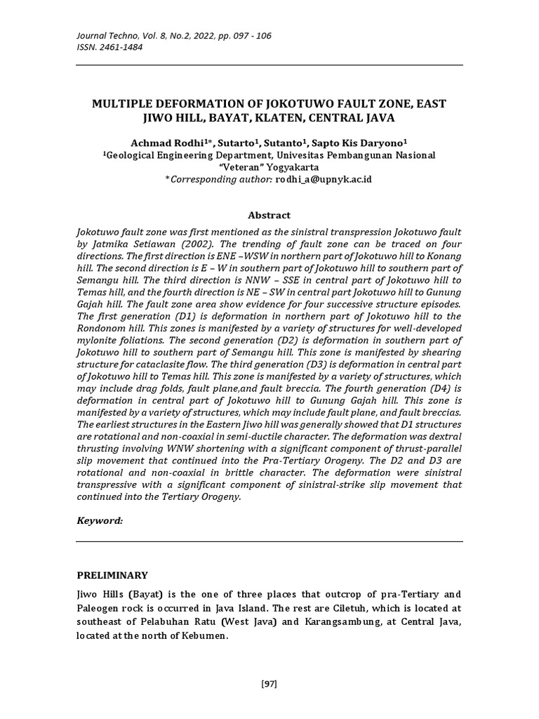 Multiple Deformation of Jokotuwo Fault Zone, East Jiwo Hill, Bayat, Klaten, Central Java