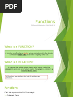 1. The document discusses key concepts in calculus including functions, their properties, classifications, domains and ranges. 2. Functions can be algebraic, trigonometric, exponential, or logarithmic. The domain is all the possible x-values, and the range is all the possible y-values. A relation is a function only if each x-value corresponds to exactly one y-value. 3. Graphs can represent functions, and the vertical line test determines if a graph represents a function or not based on whether any vertical line would intersect the curve more than once.