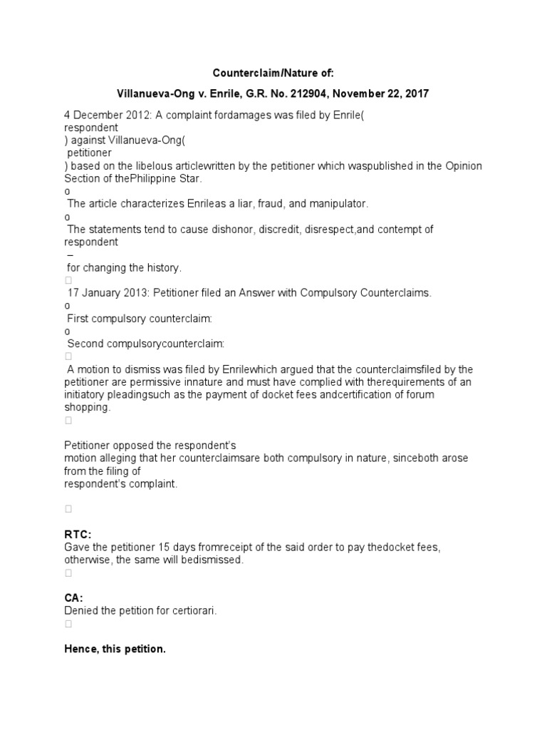A motion to dismiss was filed by Enrilewhich argued that the counterclaimsfiled by the