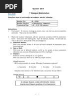 The document outlines the structure and sample questions for the entrance exam for a Ph.D. in Information Technology. The exam has two parts: (1) an English proficiency test assessing reading comprehension, grammar, and essay writing; and (2) a general test examining analytical ability, quantitative ability, and fundamentals of computer science through multiple choice questions. Sample questions are provided for each section.
