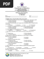 This document contains a 20-item multiple choice assessment on personal development topics like self-concept, self-esteem, social exchange theory, family structures and relationships. It tests students' understanding of key terms and concepts from their 3rd and 4th week lessons. The assessment includes questions about Filipino cultural values as well as genograms - diagrams that illustrate a person's family relationships and medical history over generations. It will be used to evaluate students' learning progress in the second quarter of the senior high school year.