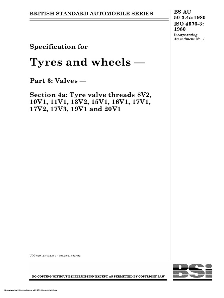 Automobile Standards Committee, is identical with ISO 4570- 3: 1 980 “Tyre v alv e