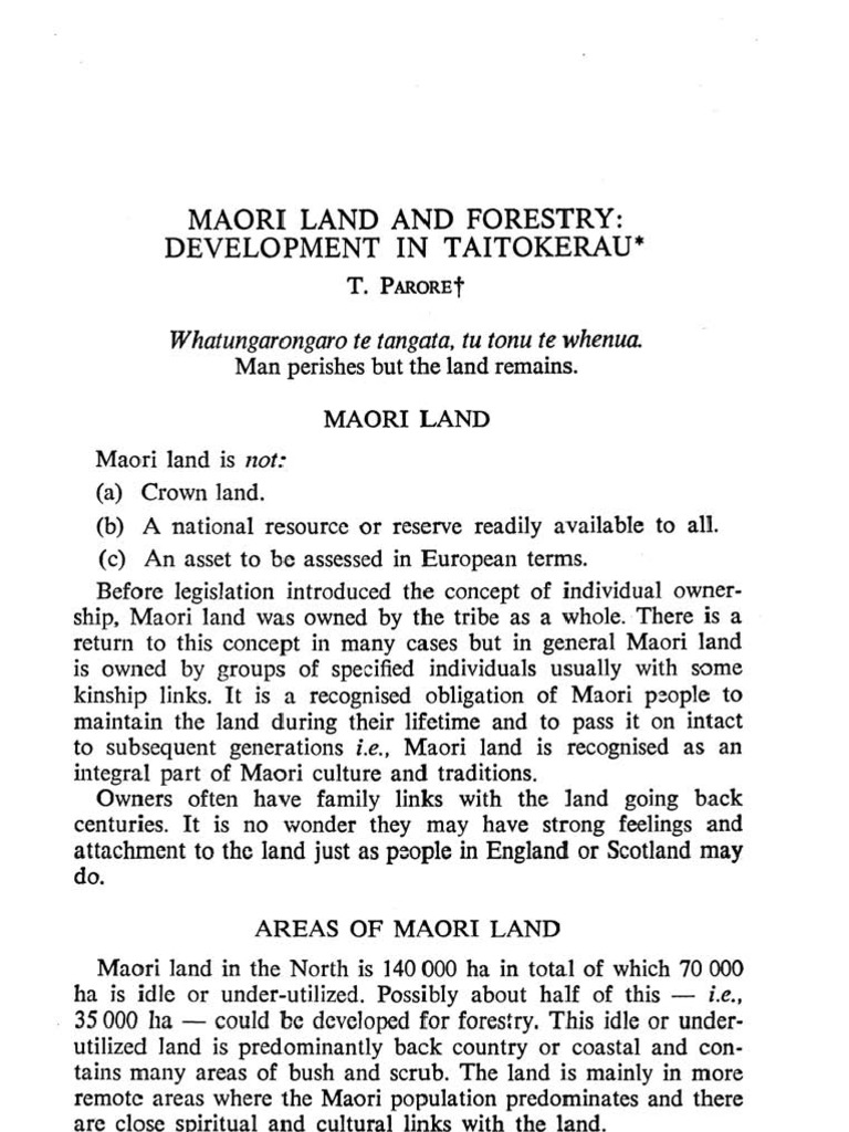 REFERENCE Parore, T., 1981. "Maori land forestry. A Maori viewpoint/' Paper presented to 1981 N.Z. Forestry Conference. Forestry Council, Wellington.