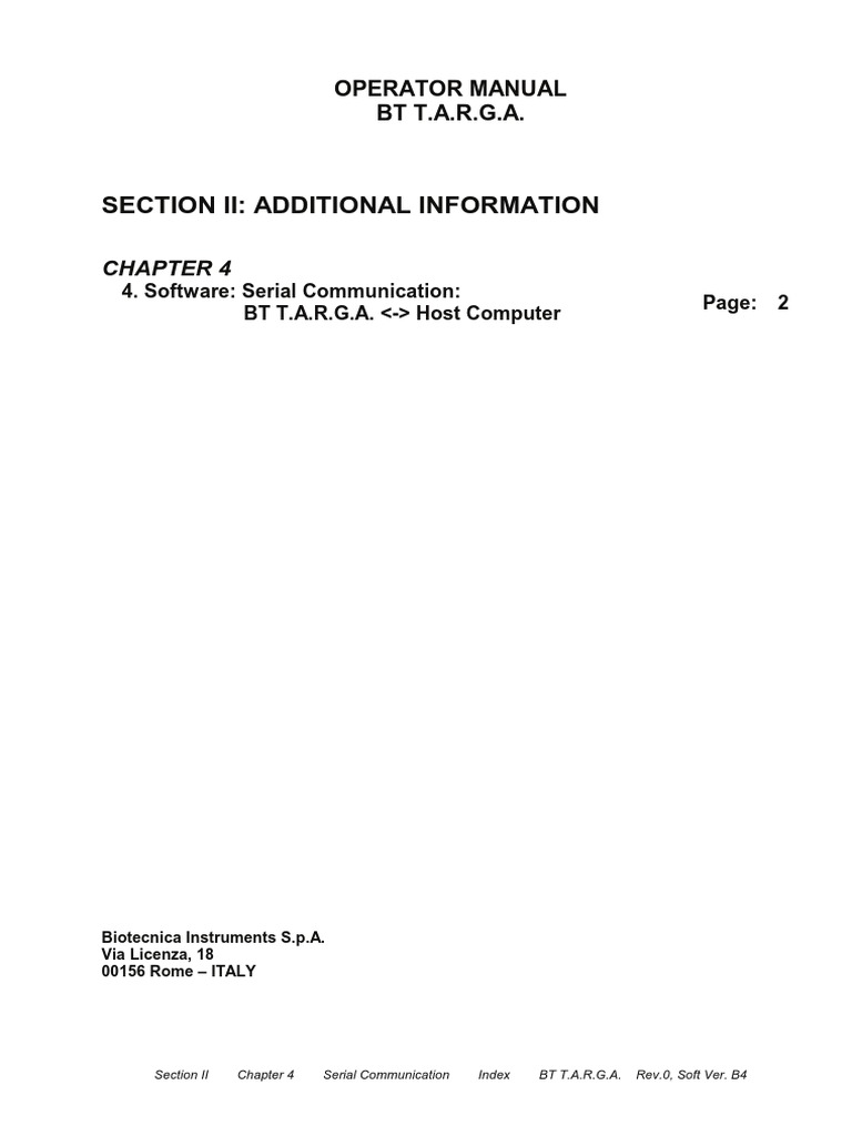 Section II Chapter 4 Serial Communication Index BT T.A.R.G.A. Rev.0, Soft Ver. B4
