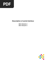 The document describes the serial communication protocol between the BT T.A.R.G.A. analyzer and a host computer. It details the technical specifications of the RS-232 serial connection as well as the data formats and transmission procedures for sending patient test orders from the computer to the analyzer and sending results from the analyzer to the computer. Procedures are provided for routine tests, STAT tests, and transmitting error codes.