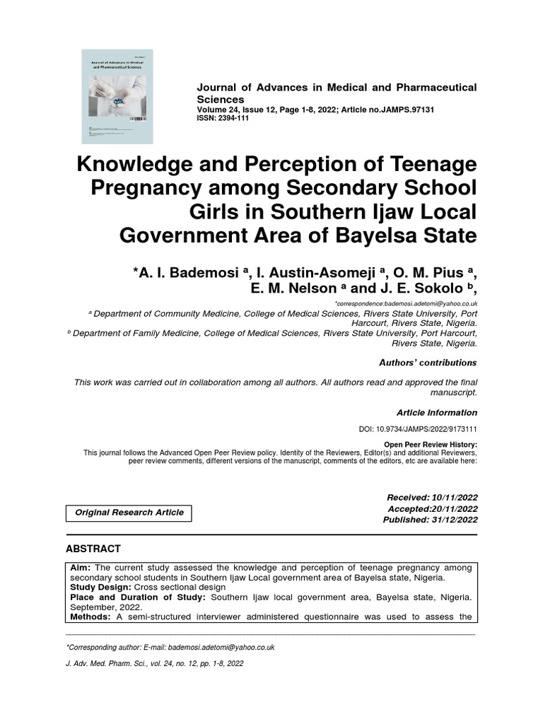 Bademosi et al.; J. Adv. Med. Pharm. Sci., vol. 24, no. 12, pp. 1-8, 2022; Article no.JAMPS.97131