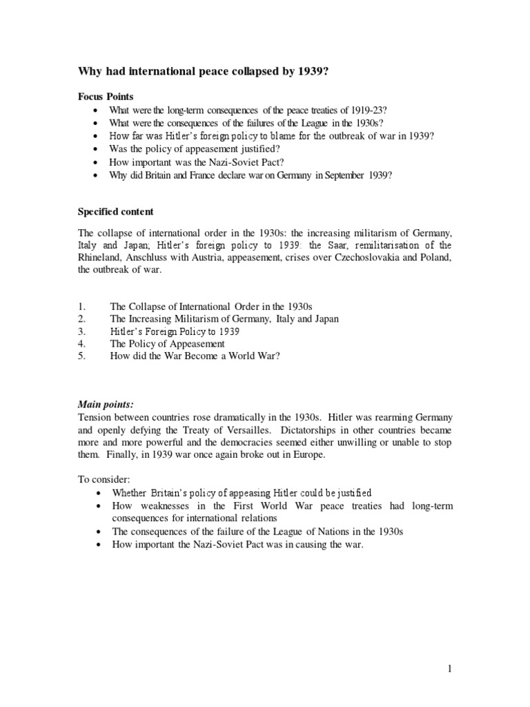 The collapse of international order in the 1930s: the increasing militarism of Germany,