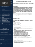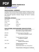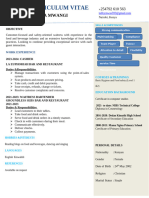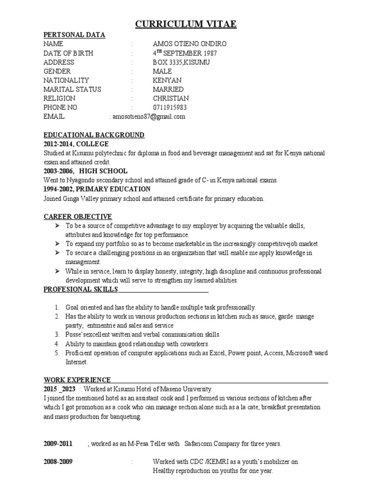 Studied at Kisumu polytechnic for diploma in food and beverage management and sat for Kenya national