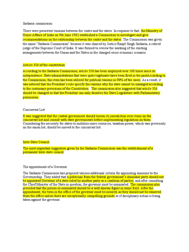 The most important suggestion given by the Sarkaria Commission was the establishment of a