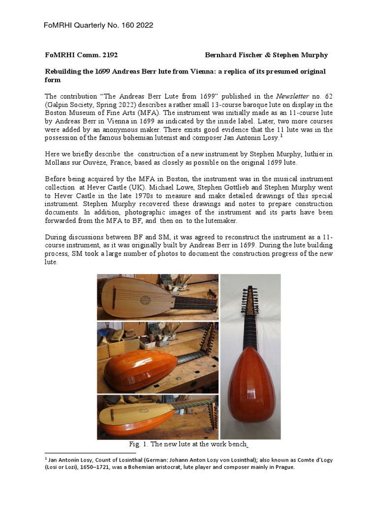 The contribution “The Andreas Berr Lute from 1699” published in the Newsletter no. 62