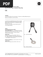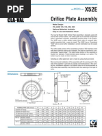 The document provides calculations for flow versus differential pressure for an orifice plate used in two applications: an EOP oil flow and a control oil flow. It includes information on fluid properties, pipe specifications, orifice details like bore diameter and thickness, and differential pressure measurements across a range of flow rates. Differential pressure increases non-linearly with higher flow rates for both applications according to the calculations shown in graphs of differential pressure versus flow.