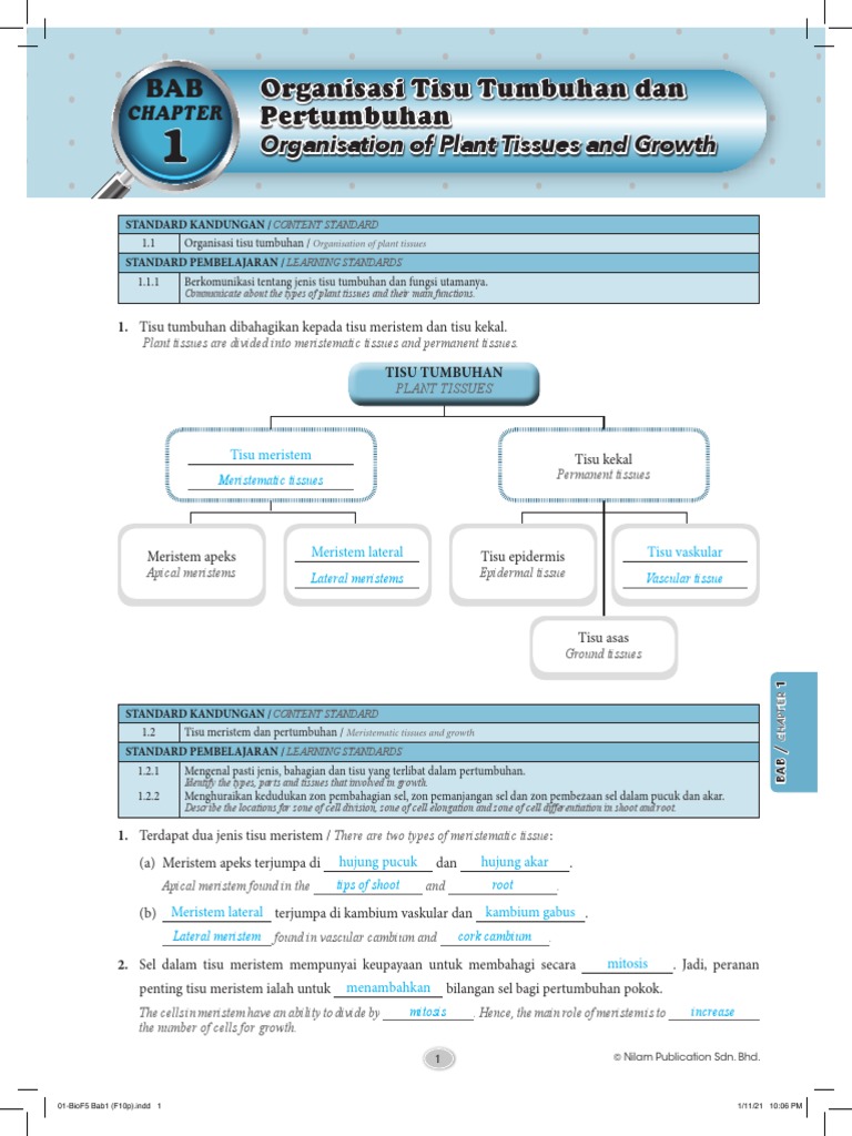 1.2 Tisu meristem dan pertumbuhan / Meristematic tissues and growth
